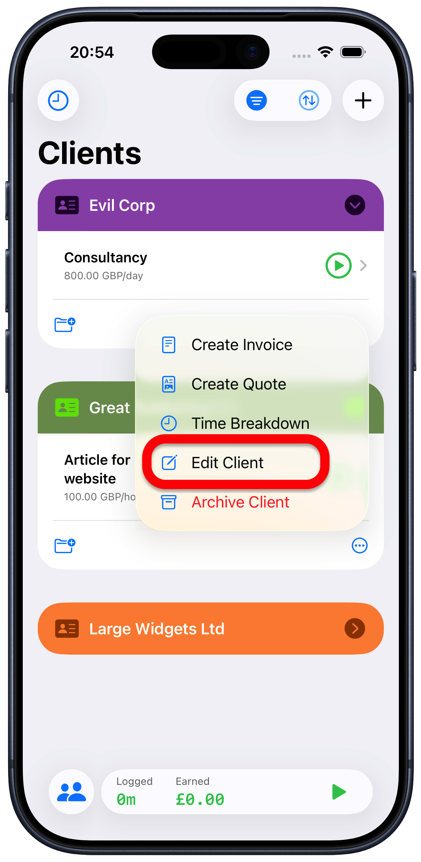 Choose “Edit Client”