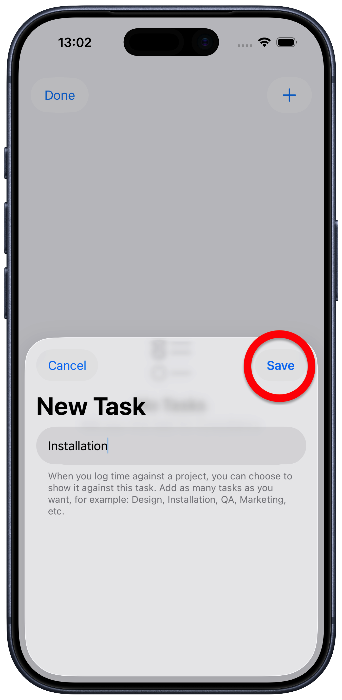 Tap “Save” to add that task to the project task list.