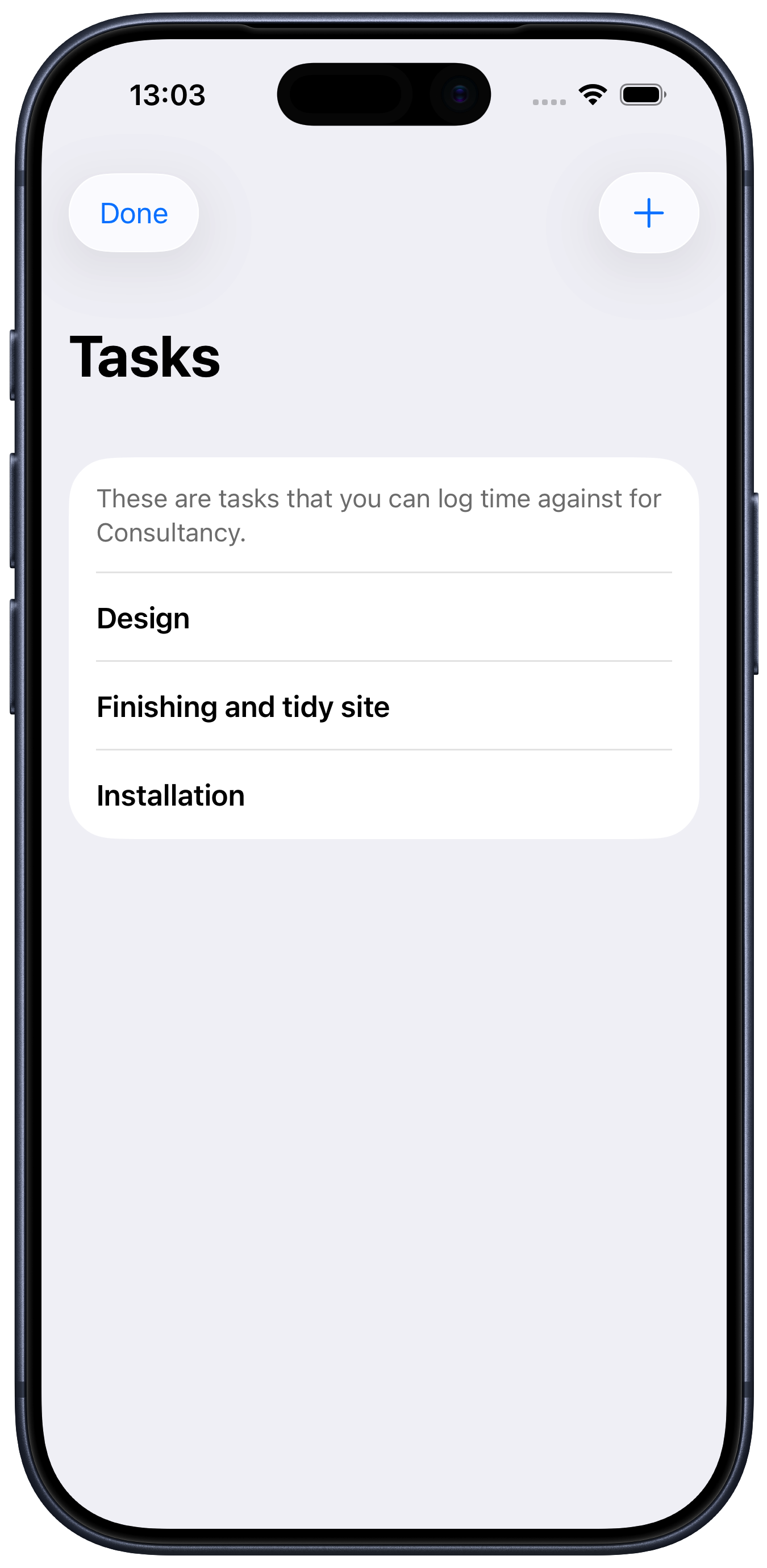 If you later generate an invoice for the client, any time logged against a task will shown in the breakdown.